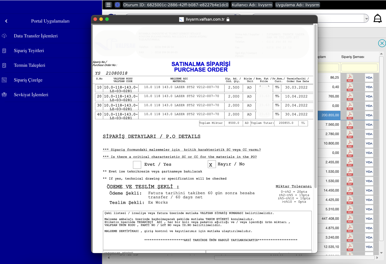Sipariş formlarınızı bir sonraki seviyeye çekip kalite koşullarınız dahil tedarikçilerinize servis edebilirsiniz.